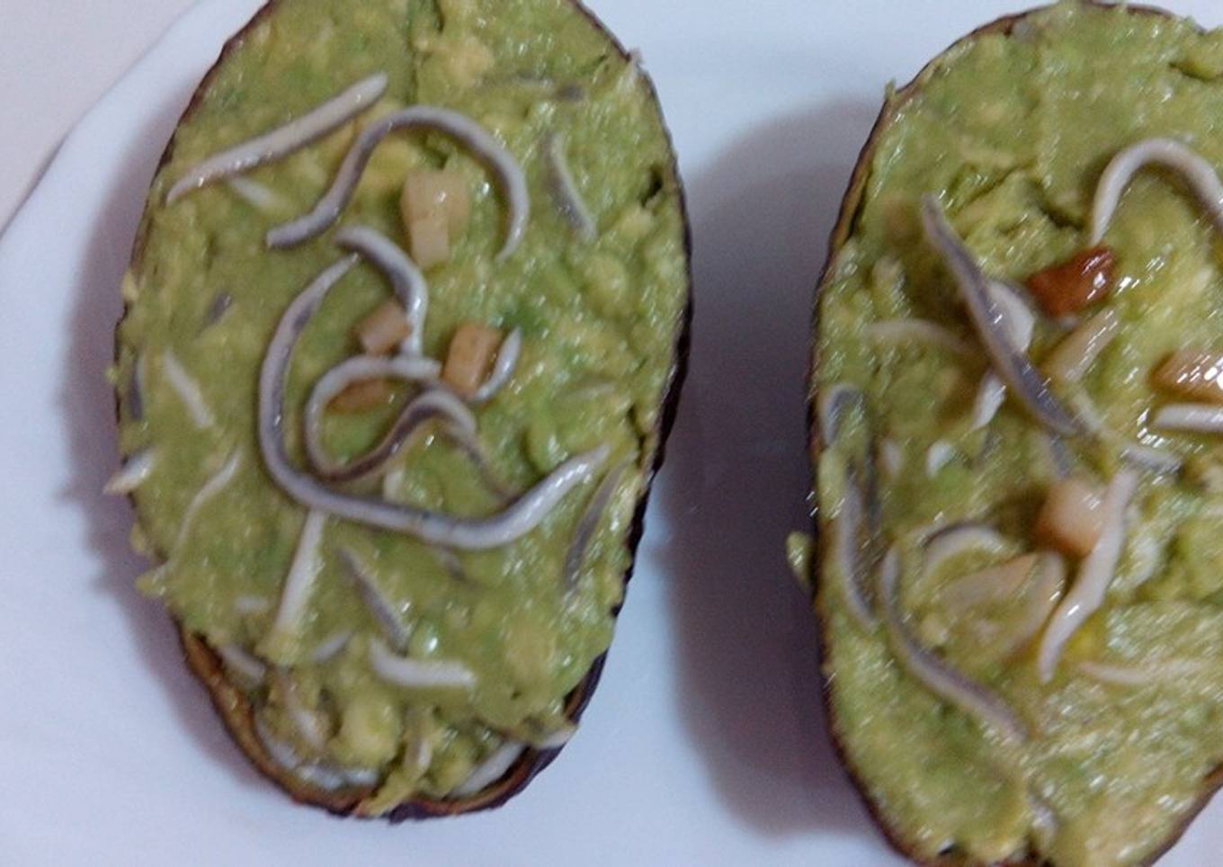 - Vaciar el aguacate y mezclarlo con las gulas al ajillo y rellenar el aguacate