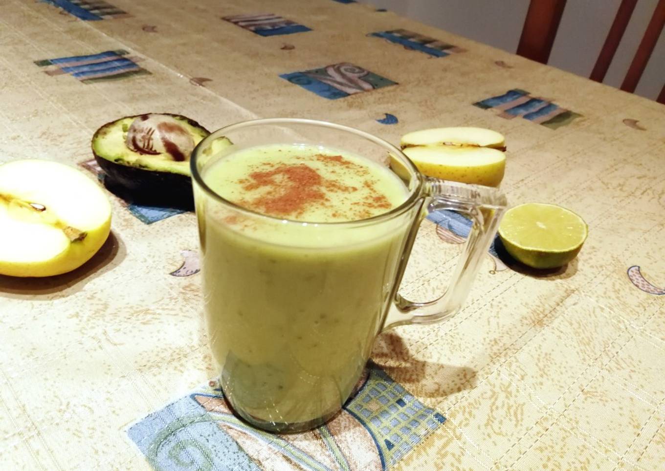 - Vierte sobre la manzana y aguacate, la bebida vegetal de avena, el zumo de lima y la piel rallada, y añade la menta o poleo menta picada y una pizca canela molida. Tritura hasta obtener un batido fino.