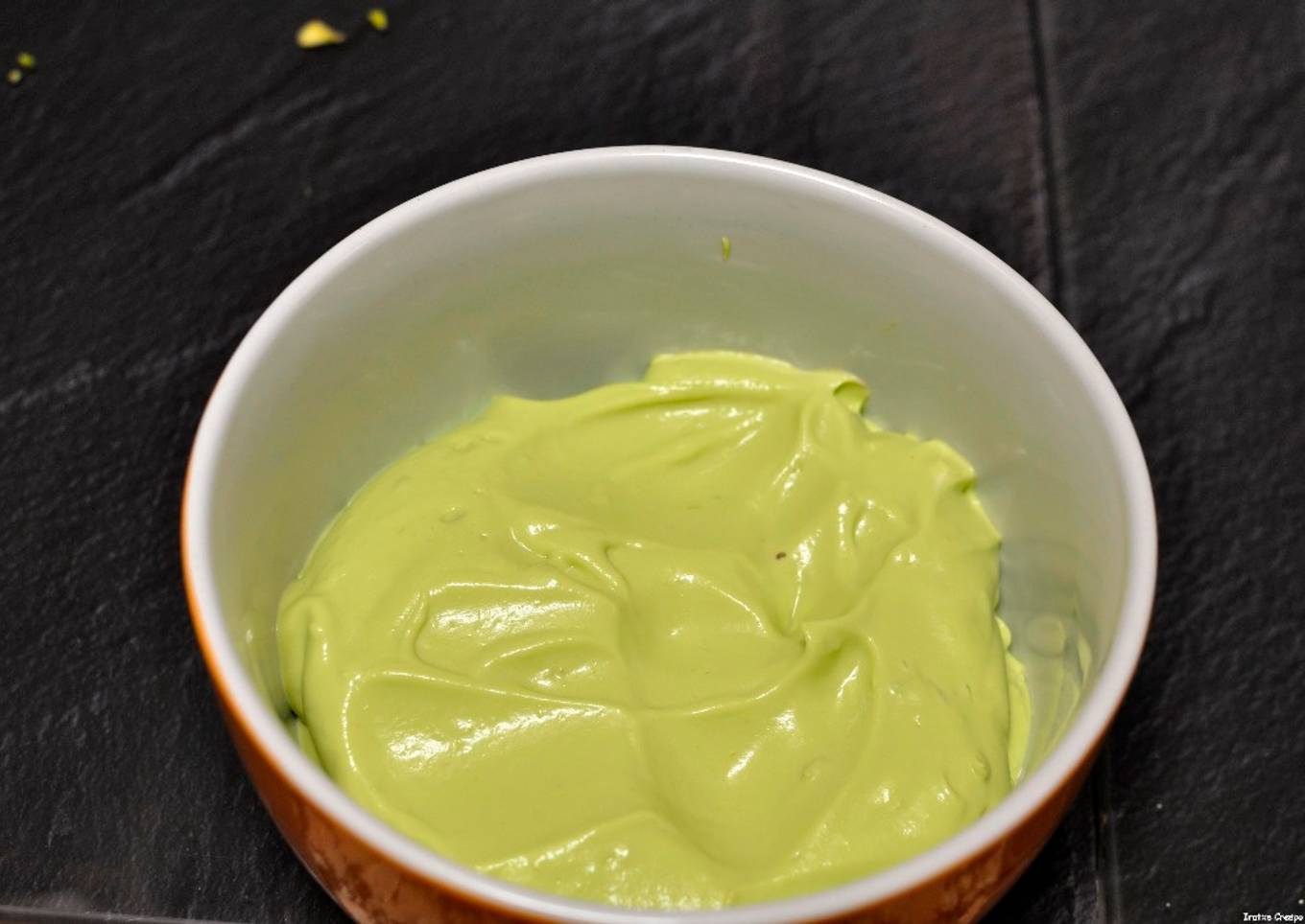 - Para vaciar el aguacate, hacer un corte a la mitad, y con la ayuda de un vaciador de melones, quitar el hueso e ir vaciando el aguacate. Picar el aguacate. En un vaso batidos, añadir el aguacate picado, el queso fresco batido, el AOVE y la sal, batir muy bien.