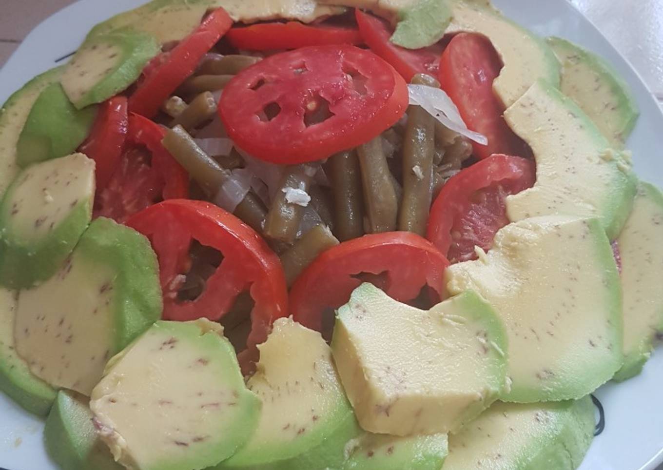 Ensalada mixta de habichuelas, tomates y aguacate