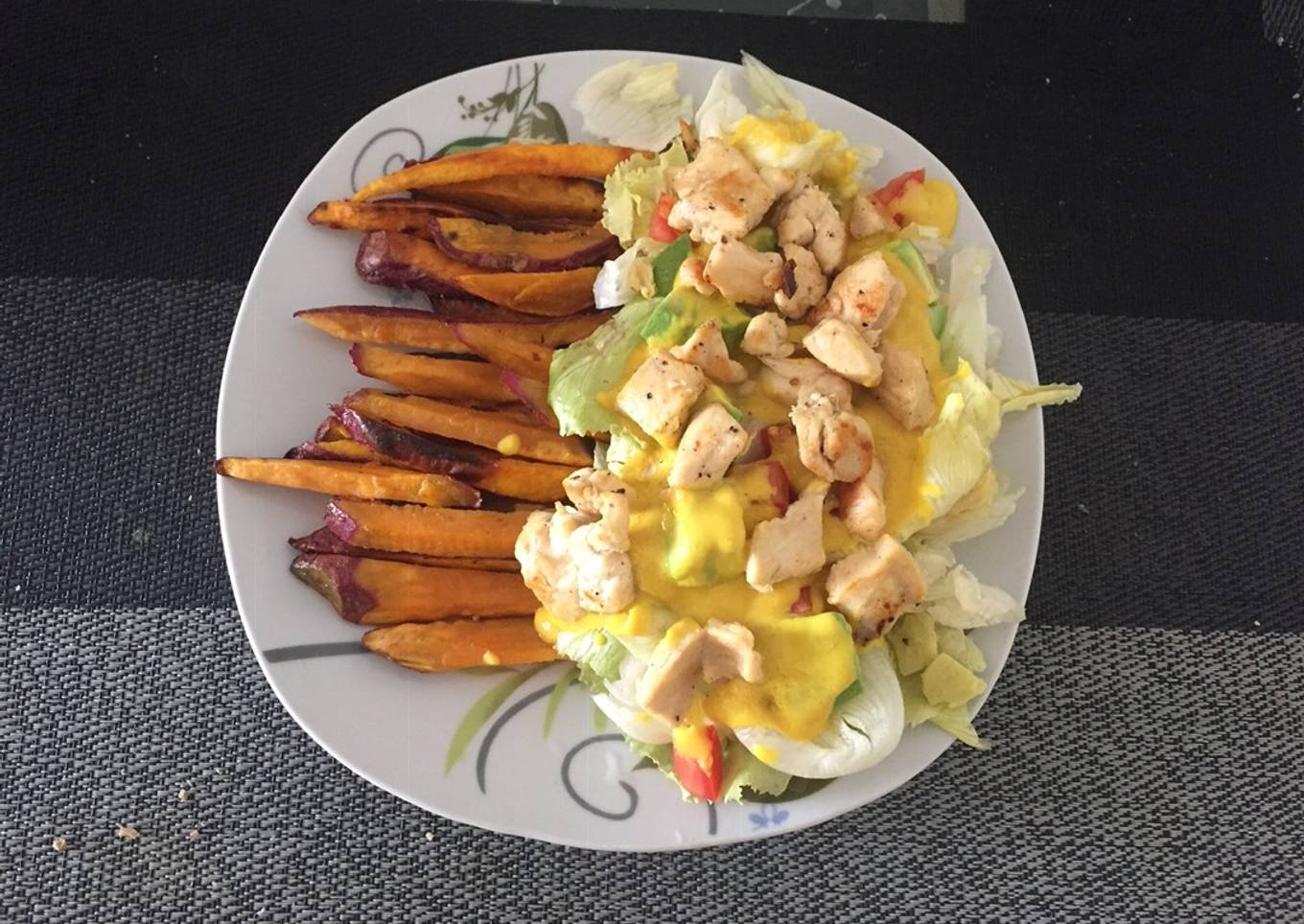 Ensalada, pollo y camoteš„