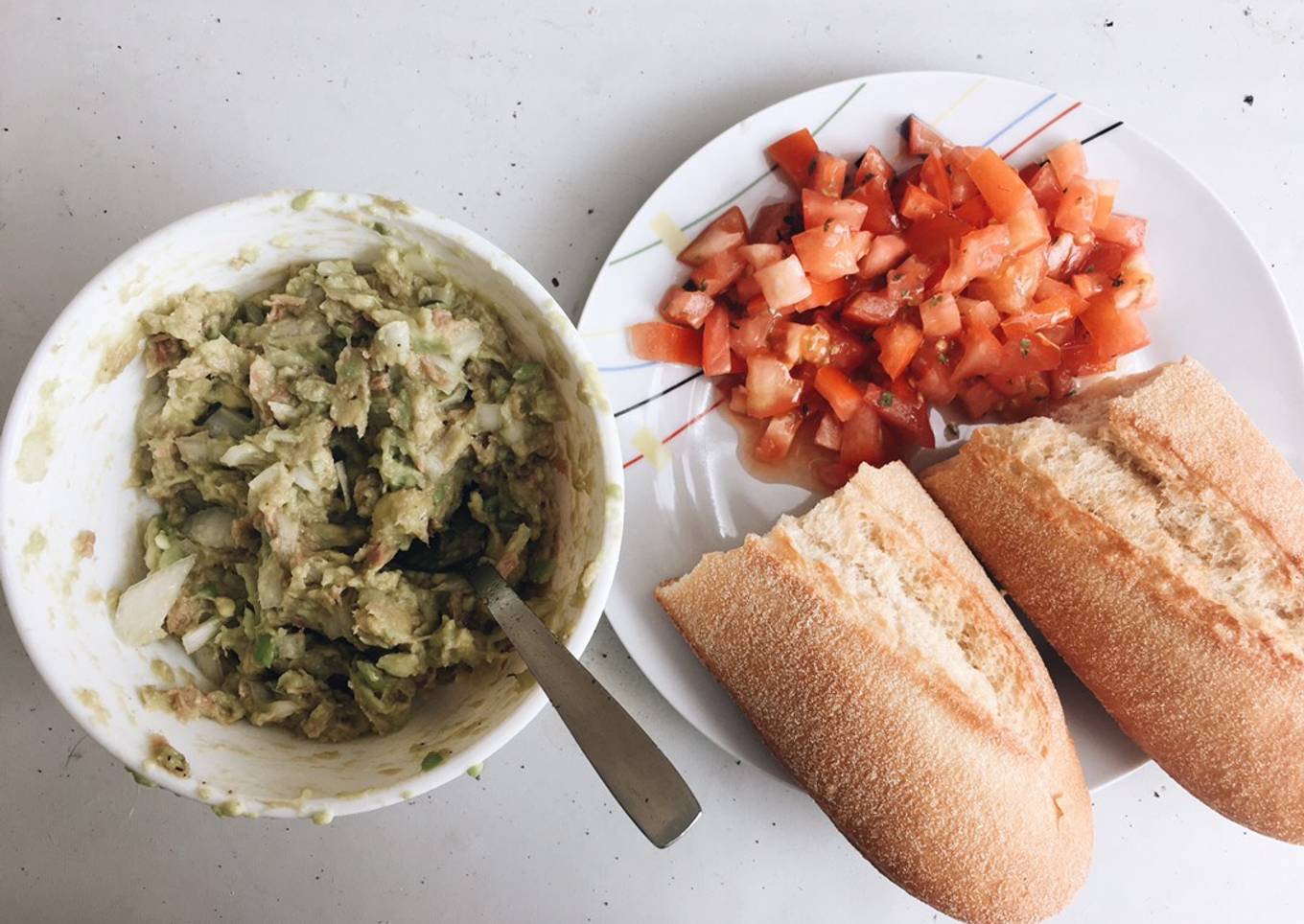 Pasta de aguacate y atún con ensalada de tomates🥑🍅