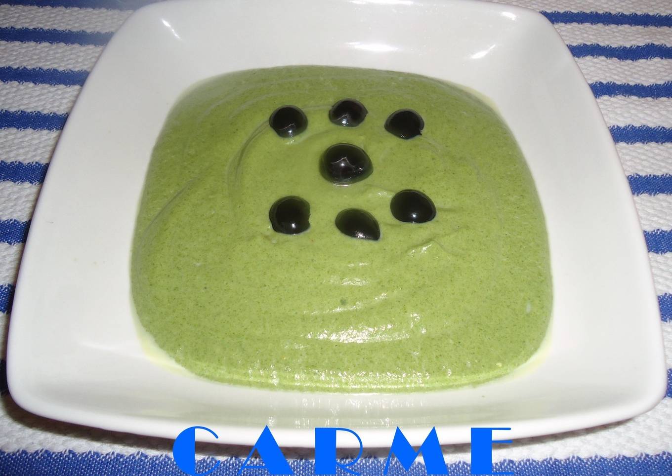 - Emplatar y si lo deseais, podeis adornar con las aceitunas, partidas ó enteras (le dán muy buén sabor al la crema. Espero que os guste.