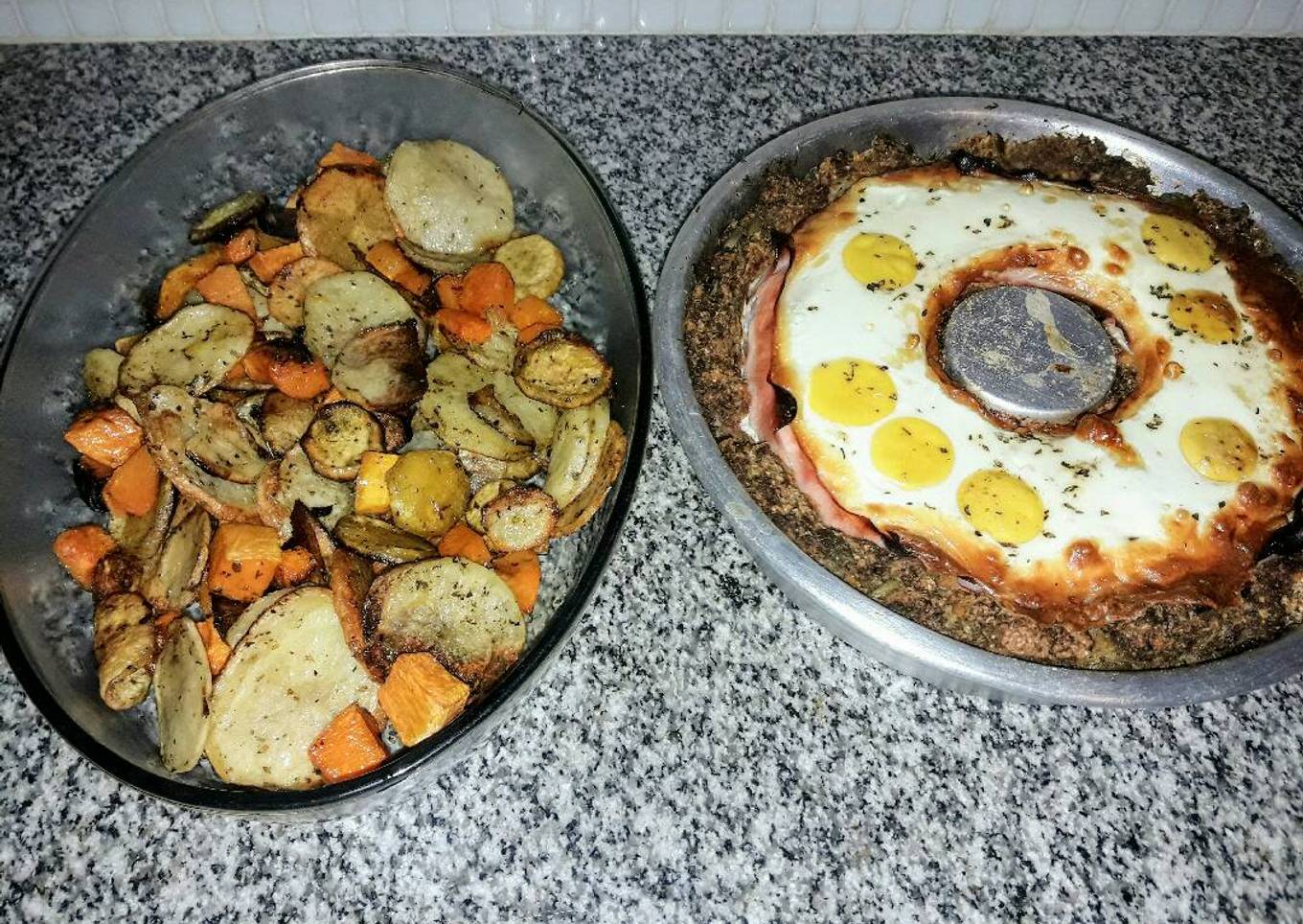 Con una guarnici贸n de papas, calabaza y batatas al horno馃憣