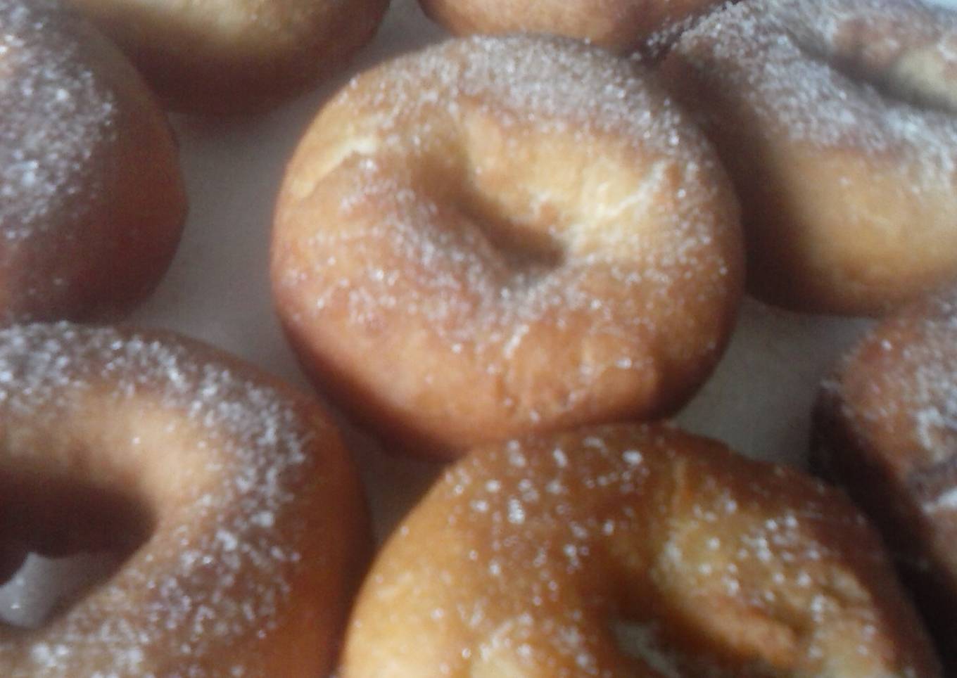 - Tomar la masa, porcionar y formar bolas de 25 gr. aproximadamente. Hacer con los dedos un agujero en cada bola y freírlas en el aceite. Luego, ponerlas sobre papel absorbente y espolvorear con azúcar glass.